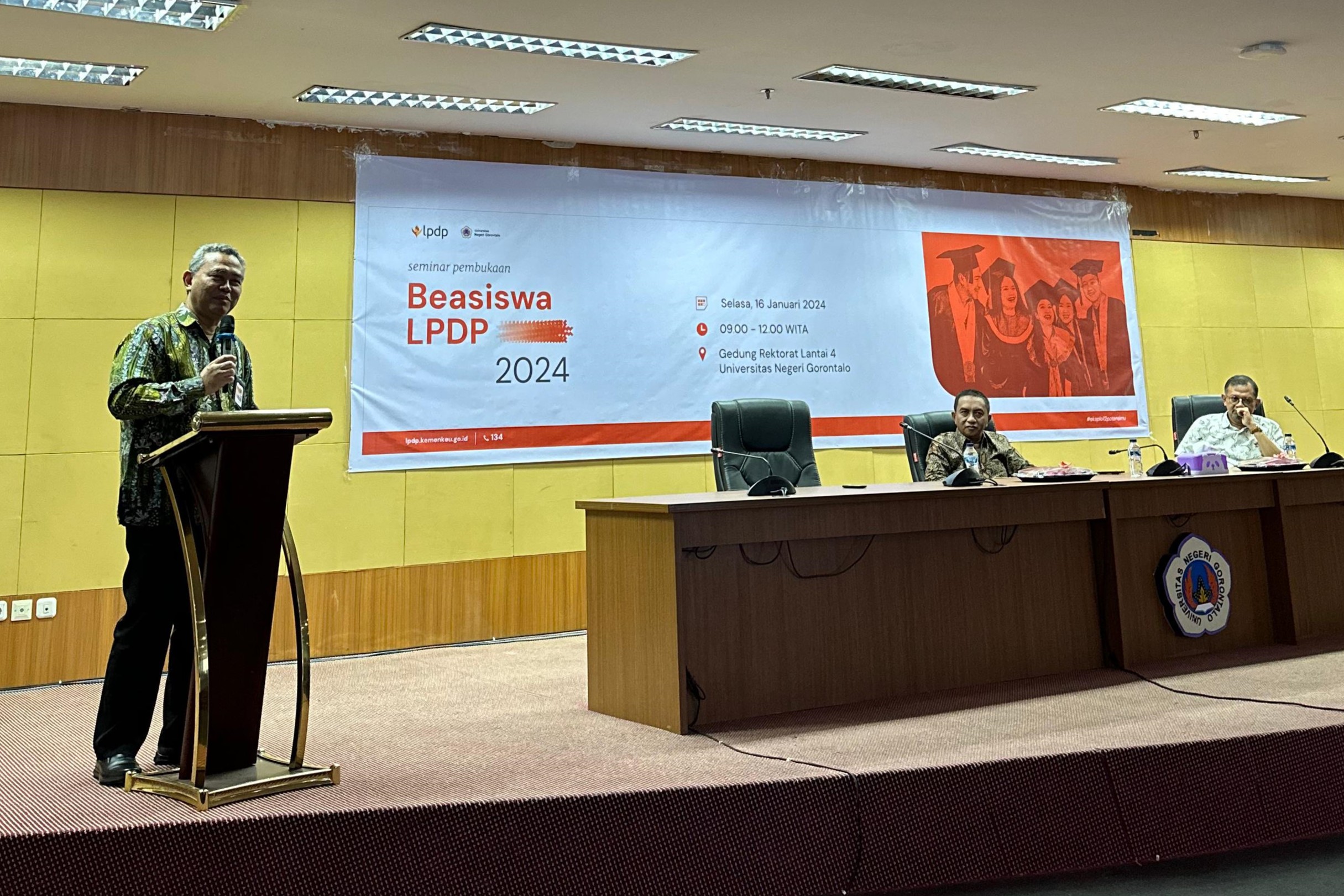 Gorontalo, January 16, 2024 - In the scenic and marine-rich Tomini Gulf region, the Indonesia Endowment Fund for Education Agency (LPDP) is reaching out to the brightest minds in Gorontalo who aspire to pursue higher education. The Opening Seminar for the 2024 LPDP Scholarship was held at Gorontalo State University, introducing students to fully-funded Master's and Ph.D. scholarships provided by the government.