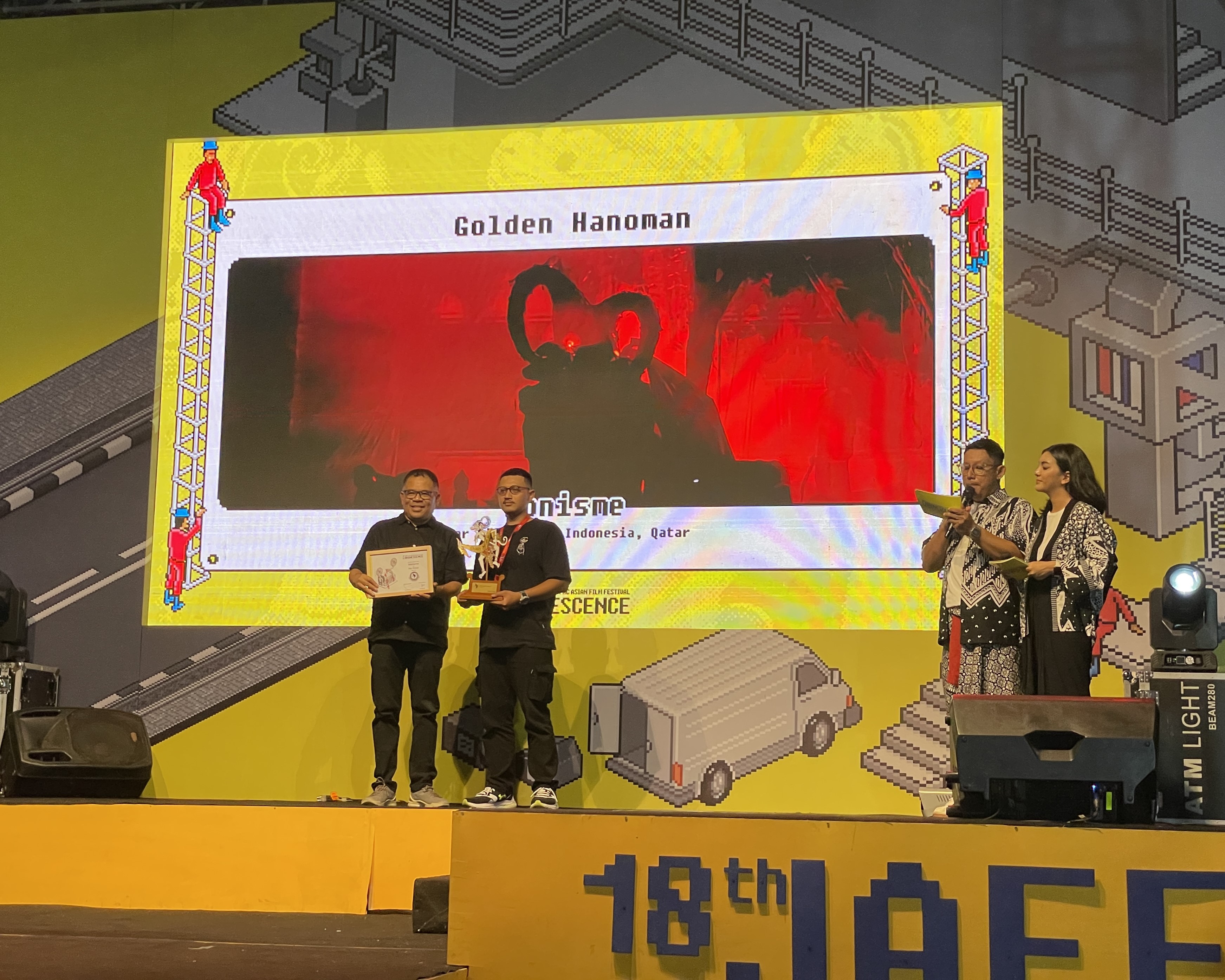 Yogyakarta, 3 Desember 2023 - Jogja-NETPAC Asian Film Festival (JAFF), salah satu festival film tahunan paling bergengsi resmi ditutup pada Sabtu (2/12) malam kemarin. Film Indonesia berjudul Monisme terpilih sebagai film terbaik di JAFF18 dan berhak mendapat penghargaan Golden Hanoman.