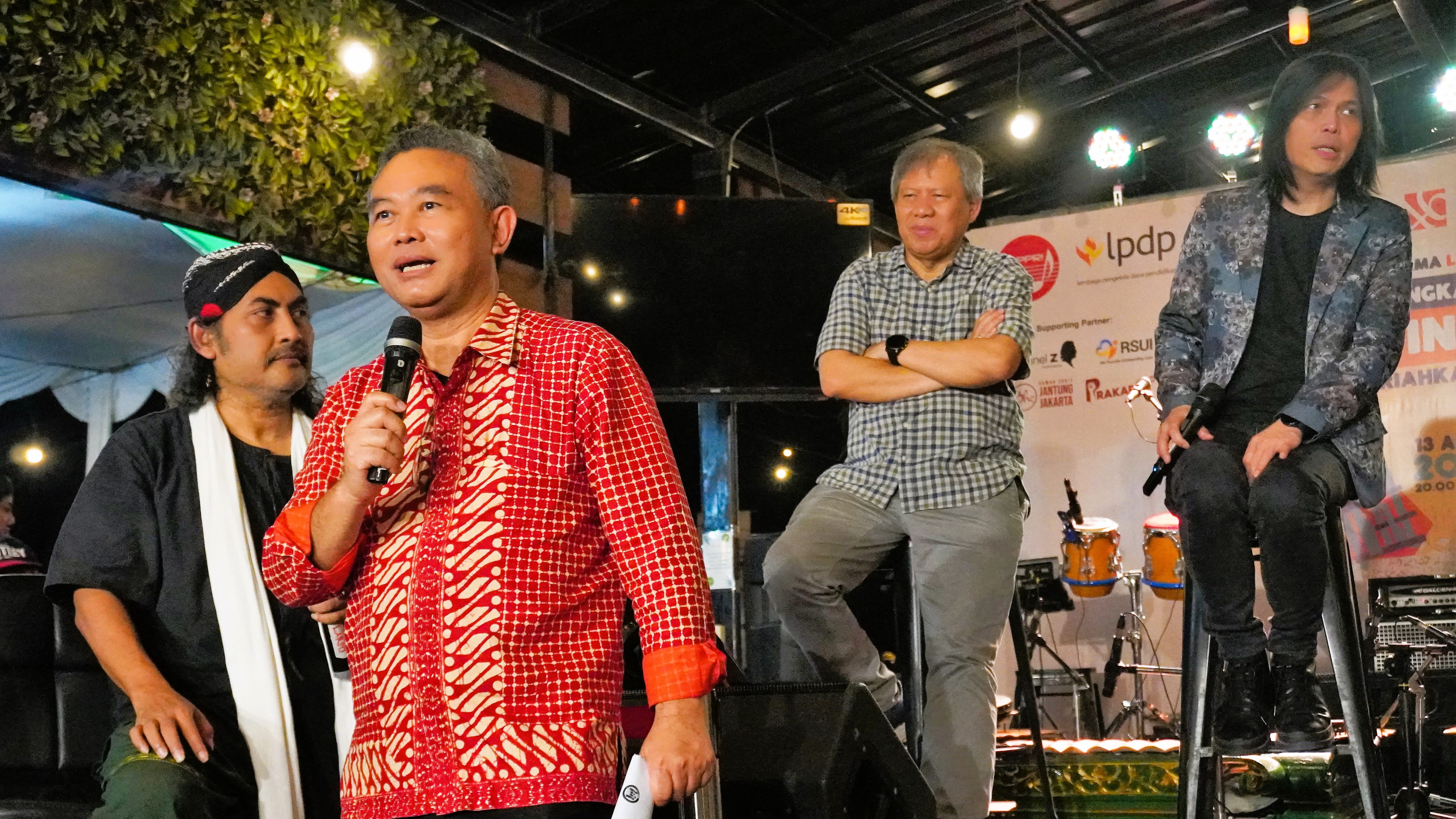 “Yang pasti pemerintah sudah hadir memberikan dana pada pegiat budaya. Semoga kita jadi tuan rumah di negeri sendiri dan tidak diongkosi oleh negara lain,” ujarnya sambil disambut meriah para penonton dan pegiat musik.