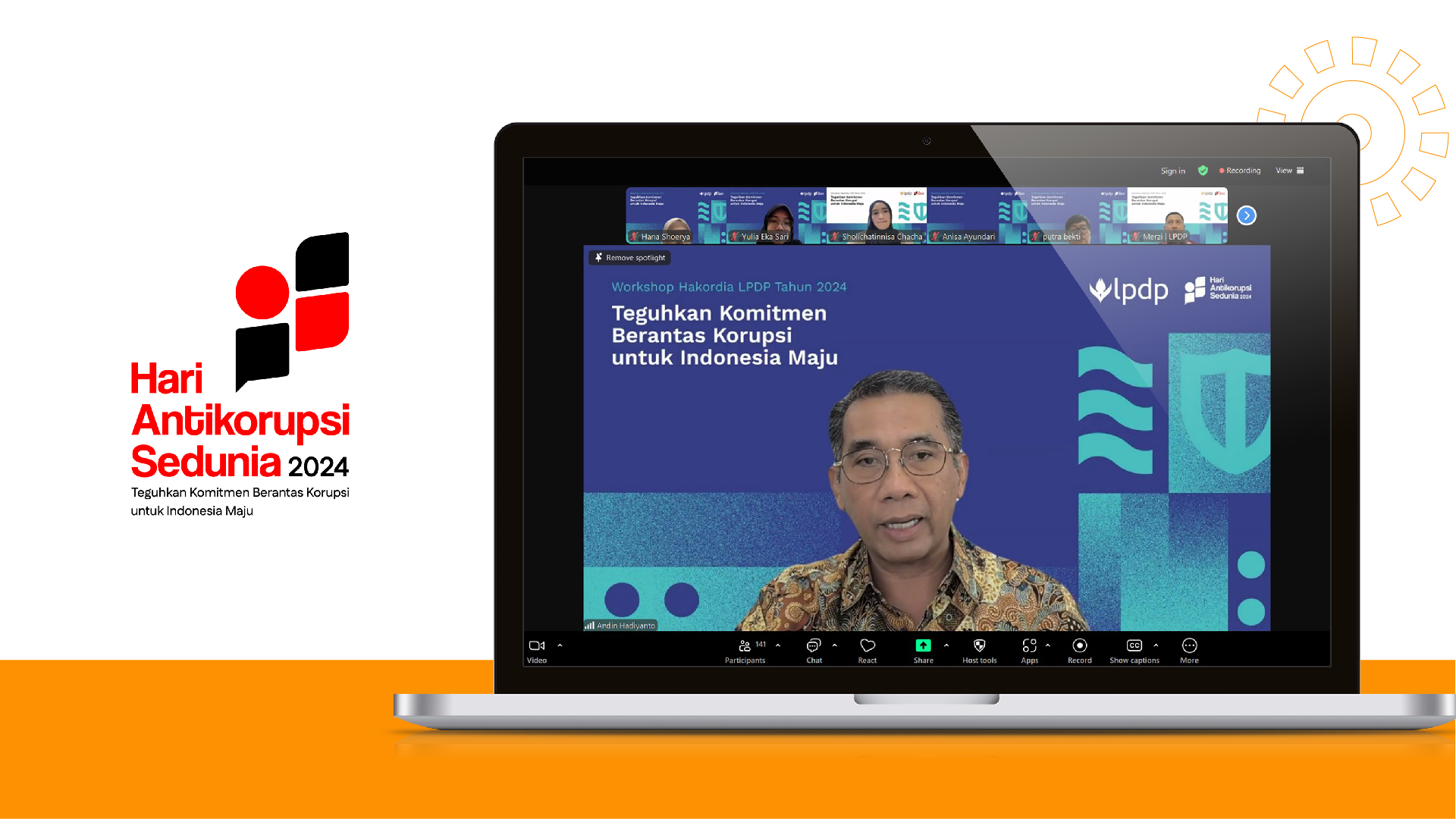 Jakarta, 9 Desember 2024 - Kejahatan luar biasa semacam perilaku korup turut berpotensi mengancam amanah Dana Abadi di Bidang Pendidikan yang dikelola LPDP. Sebagai wujud ikhtiar pencegahan, LPDP turut berpartisipasi merayakan Hari Antikorupsi Sedunia (HAKORDIA 2024) dengan menggelar workshop HAKORDIA bertema: “Teguhkan Komitmen Berantas Korupsi untuk Indonesia Maju” pada Jumat (6/12) siang lalu.
