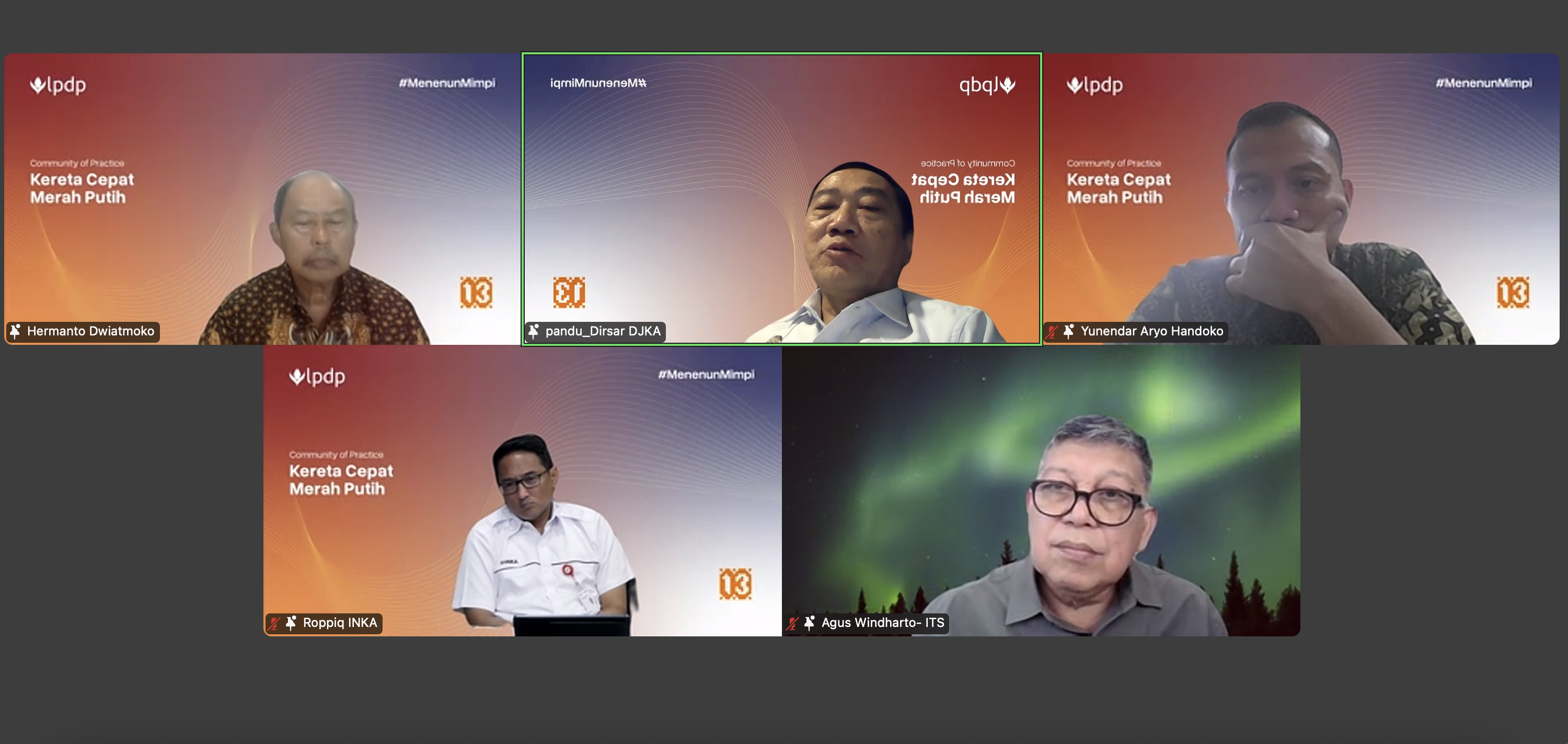 Jakarta, 17 Juni 2025 - Di tengah geliat pembangunan infrastruktur transportasi nasional, wacana kemandirian teknologi kereta api berkecepatan tinggi kembali mencuat. Lembaga Pengelola Dana Pendidikan (LPDP) bersama pemangku kepentingan strategis menggelar forum Community of Practice (CoP) bertajuk “Kereta Cepat Merah Putih” pada Selasa (17/5) pagi guna menajamkan arah keberlanjutan proyek ini.