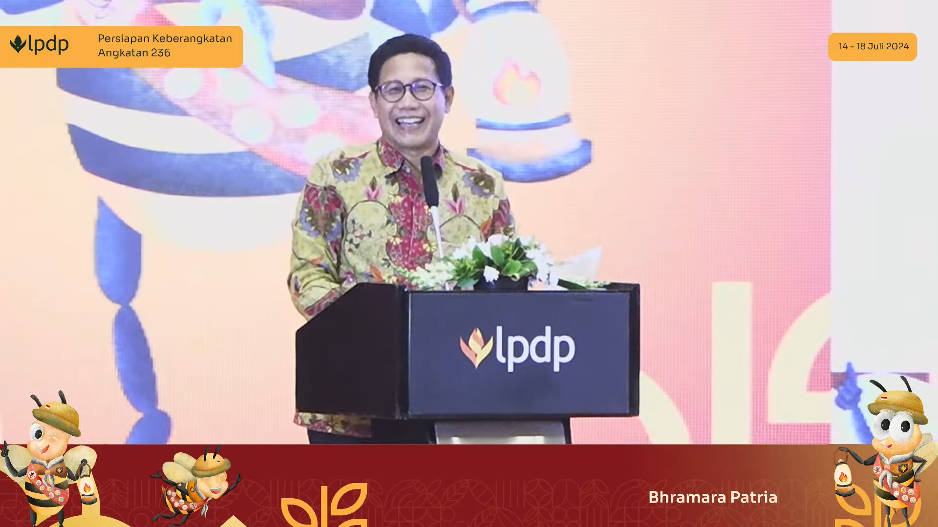 Jakarta, 19 Juli 2024 - Kegiatan Persiapan Keberangkatan (PK) telah menjadi titik temu putra-putri terpilih para penerima beasiswa Lembaga Pengelola Dana Pendidikan (LPDP). Raut ceria para penerus kemajuan bangsa ini tak bisa ditutupi dari wajah ratusan peserta PK-236 Bharama Patria.
